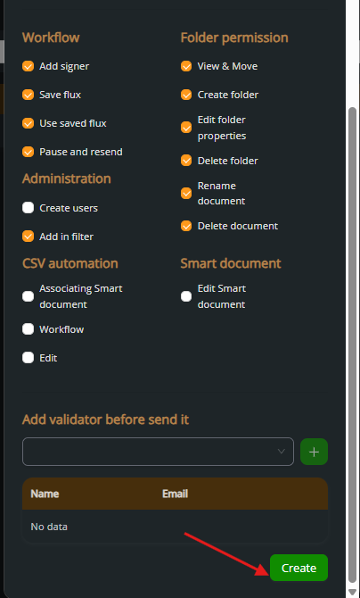 Finish by clicking Create to save the user.