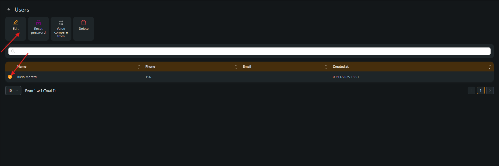 Select the user and click on Edit to configure what actions they are allowed to perform.