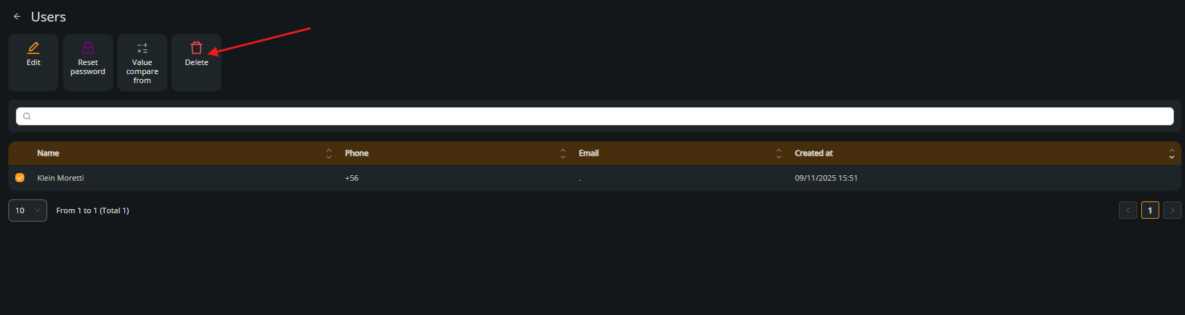 6. Select the user to delete #