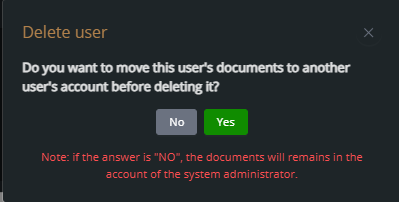 The system will ask if you want to move the user’s documents to another account before deleting.