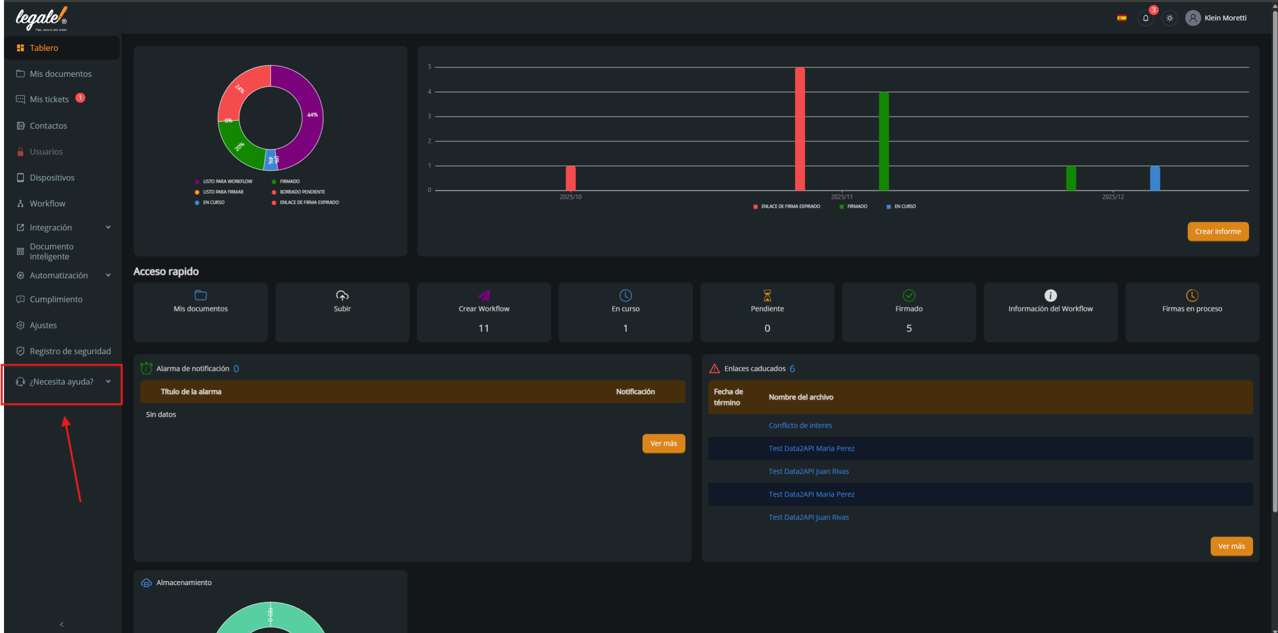 En el menú lateral izquierdo, desplázate hacia la parte inferior y haz clic en “¿Necesita ayuda?” para desplegar las opciones disponibles.