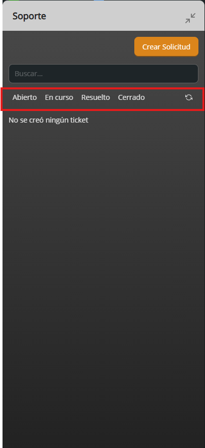 Desde el mismo panel de soporte podrás revisar tus tickets y filtrarlos por estado: