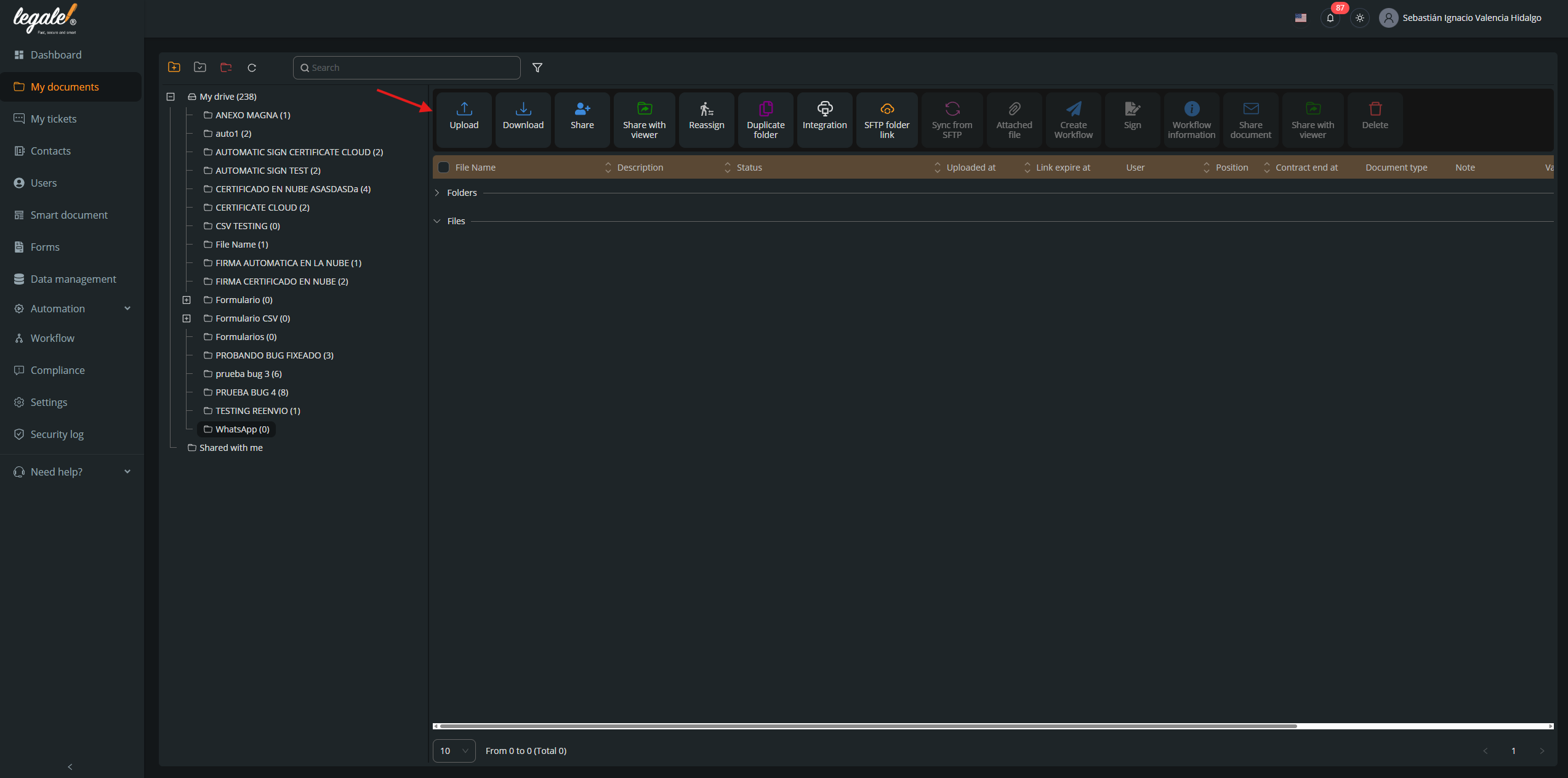 From My Documents, click the Upload button and select the file you want to send for signature.