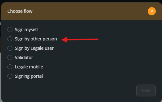 Select Sign by other person to send the document to an external signer.
