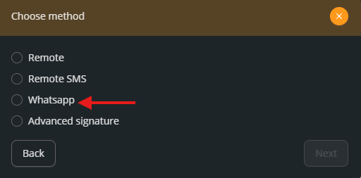 - 5. Select the WhatsApp Signing Method