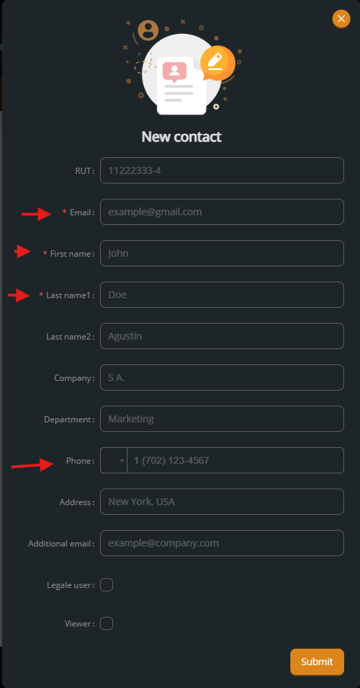 You can select an existing contact or create a new one.