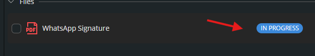 Once sent, the document status will change to In progress, indicating that the signature request has been delivered.