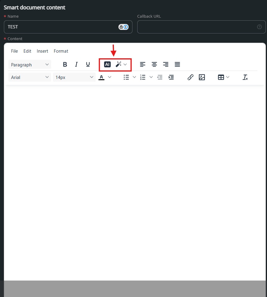 We have introduced Artificial Intelligence (AI) capabilities within Smart Documents, enabling users to create and improve document content directly inside the editor.