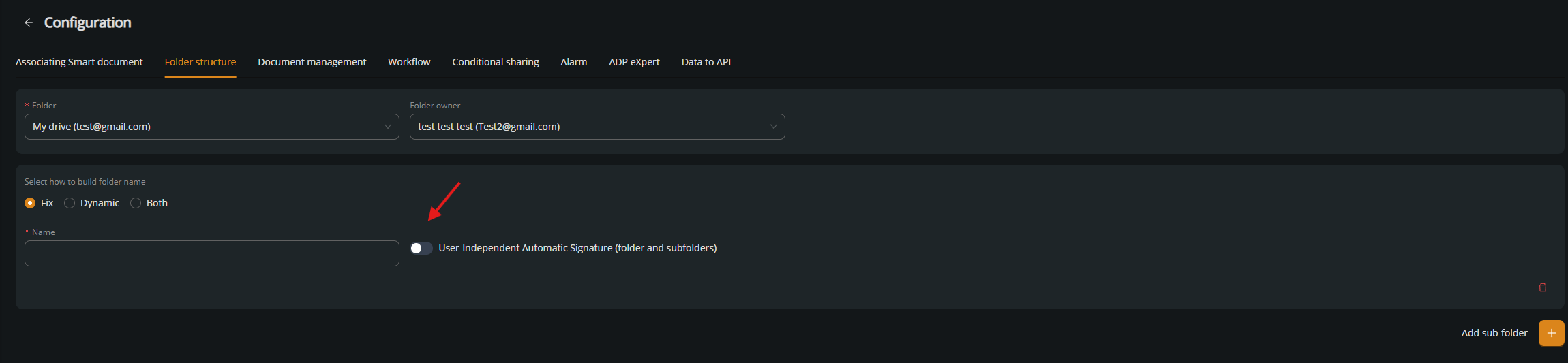 A new button has been added to allow users to explicitly enable Automatic Signing when creating or configuring folders.